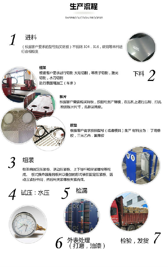 板式換熱器是由一系列具有一定波紋形狀的金屬片疊裝而成的一種新型高效換熱器。各種板片之間形成薄矩形通道,通過板片進行熱量交換。板式換熱器是液—液、液—汽進行熱交換的理想設(shè)備。它具有換熱效率高、熱損失小、結(jié)構(gòu)緊湊輕巧、占地面積小、安裝清洗方便、應(yīng)用廣泛、使用壽命長等特點。在相同壓力損失情況下,占地面積為管式換熱器的三分之一,熱回收率可高達90%以上。